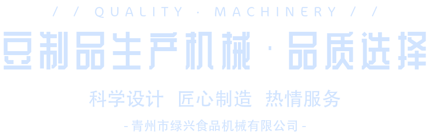青州市綠興食品機(jī)械有限公司是設(shè)計(jì)、制造全自動(dòng)豆腐機(jī)、豆腐皮機(jī)、豆腐干機(jī)、豆芽機(jī)、成套豆腐設(shè)備、豆制品機(jī)械設(shè)備,并可根據(jù)用戶不同需要定制各類豆制品設(shè)備。長期以來,青州市綠興食品機(jī)械有限公司秉憑技術(shù)設(shè)備,過硬的產(chǎn)品質(zhì)量。